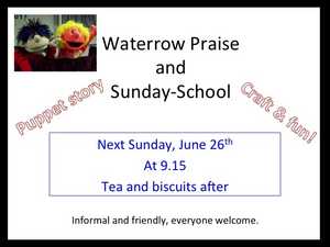 Waterrow Praise is on Sunday 26 th June at 9.15 am at the Hall.