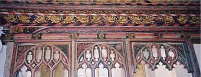The Rood Screen is very old and a gem, it bears on it some of the very finest naturalistic foliage carving executed undoubtedly by the same carver as at Uffculme.