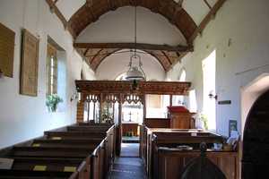 You can see evidence of medieval wall painting beneath the plaster in the nave.
